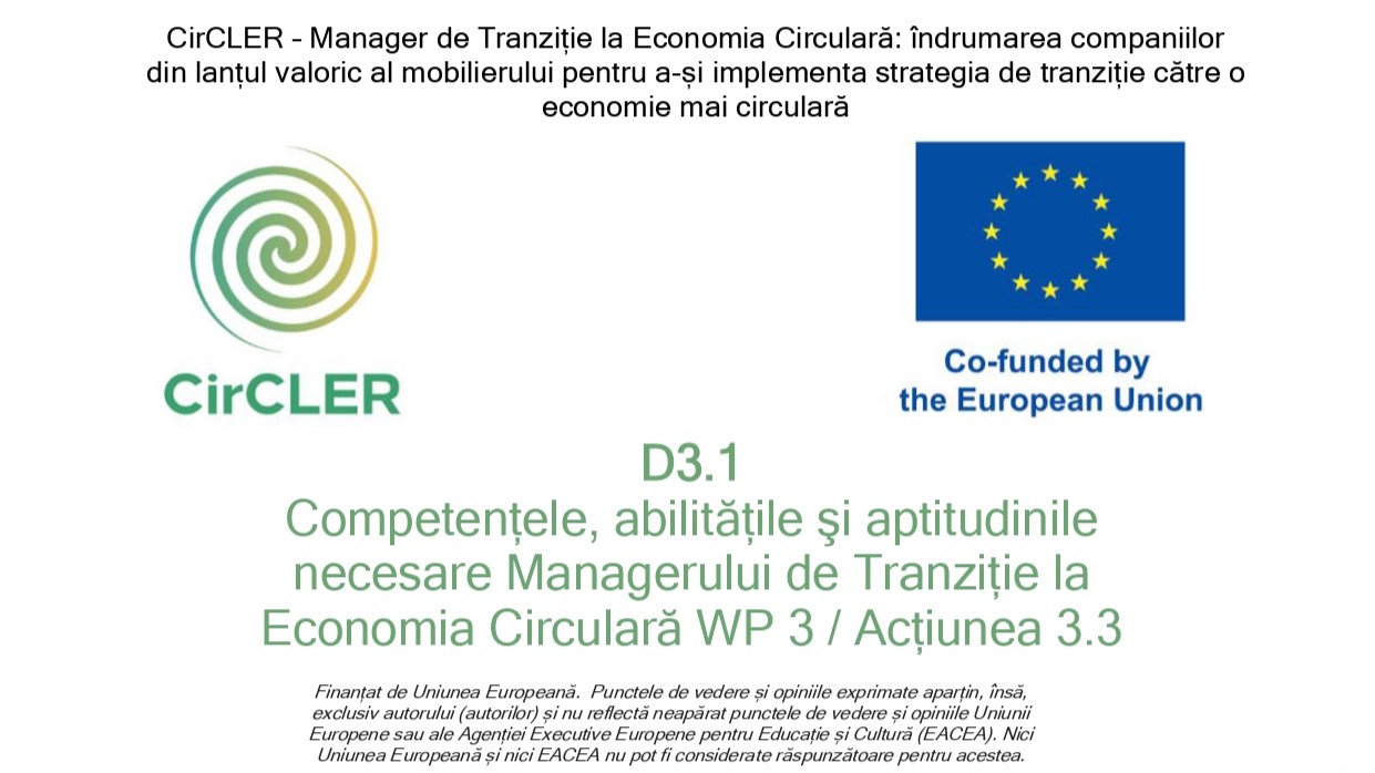 Acest raport este primul rezultat concret al proiectului CirCLER care se concentrează pe rezultatele unui exercițiu amplu realizat de partenrii CirCLER. Acesta identifică cunoştințele, aptitudinile şi competențele necesare pentru un nou profil ocupațional: managerul de tranziție către economia circulară din sectorul mobilei. Raportul se poate descărca de la adresa https://circler-furniture.eu/en/downloads.